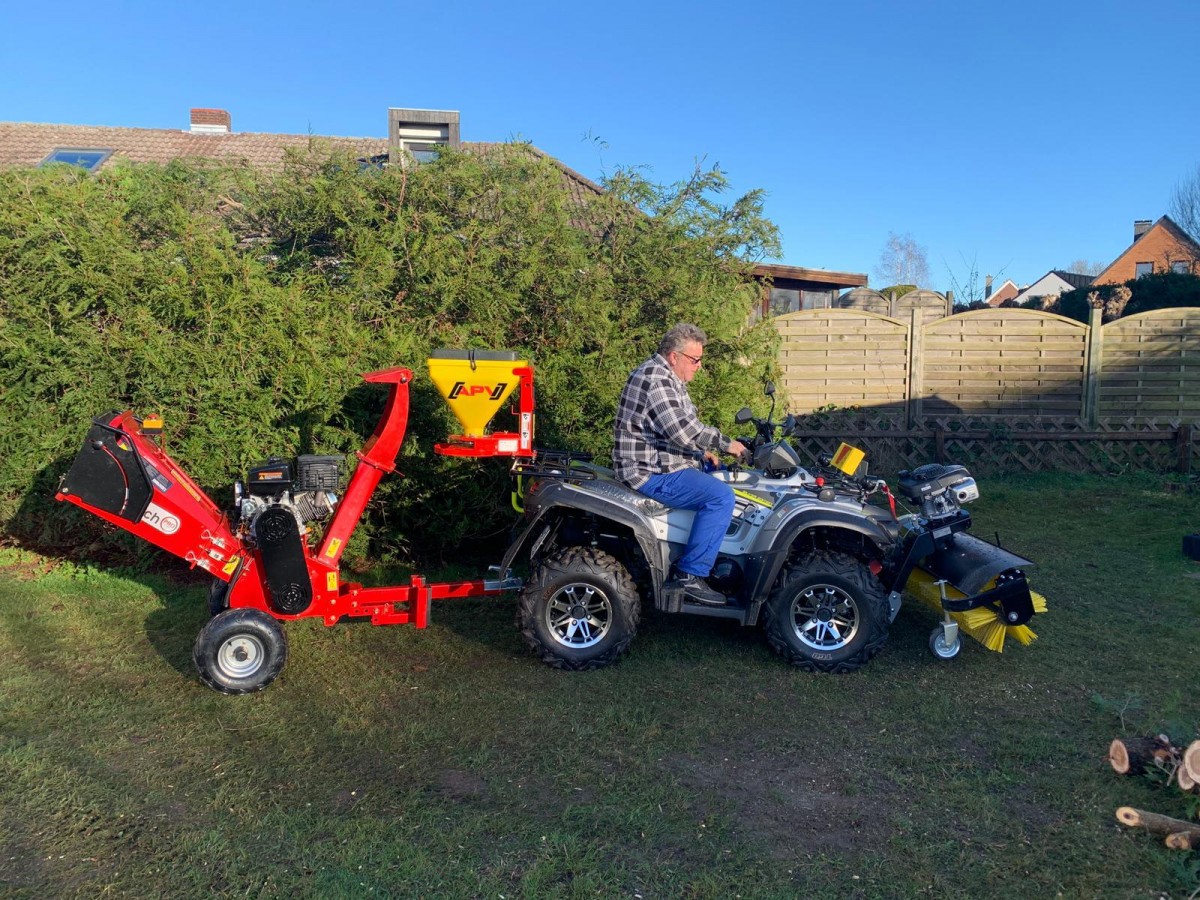 unser Benzin Häcksler kommt auch durch Türen und Gartenpforten mit einer Breite von 80 cm.