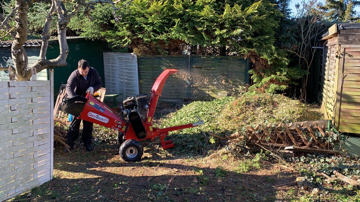 ODER können es auch mit dem Häcksler in Stücke von 3 – 5 cm zerkleinern,